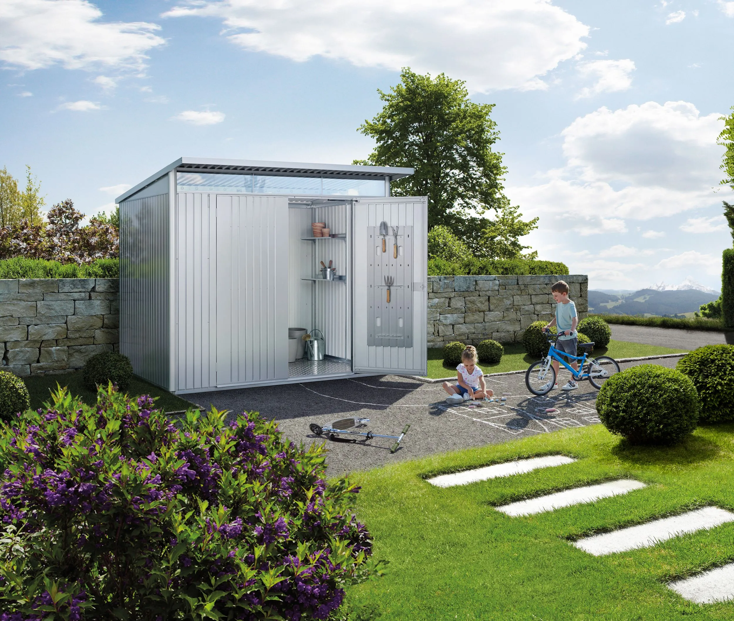 AvantGarde zasługuje na swoją nazwę. To wyjątkowo stabilny metalowy domek ogrodowy, który spełnia wymagania nowoczesnej architektury. Elegancki wygląd i liczne praktyczne zalety w codziennym użytkowaniu gwarantują pełną satysfakcję. Dożywotnia bezobsługowość pozwala zaoszczędzić pieniądze i cenny wolny czas.