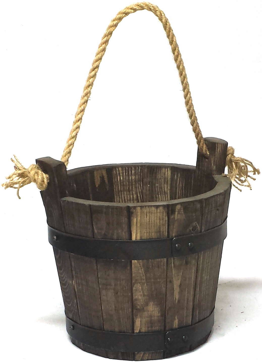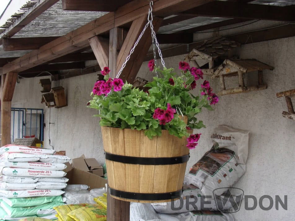 Donica nie posiada otworu drenażowego w grubym dnie z drewna sosnowego.