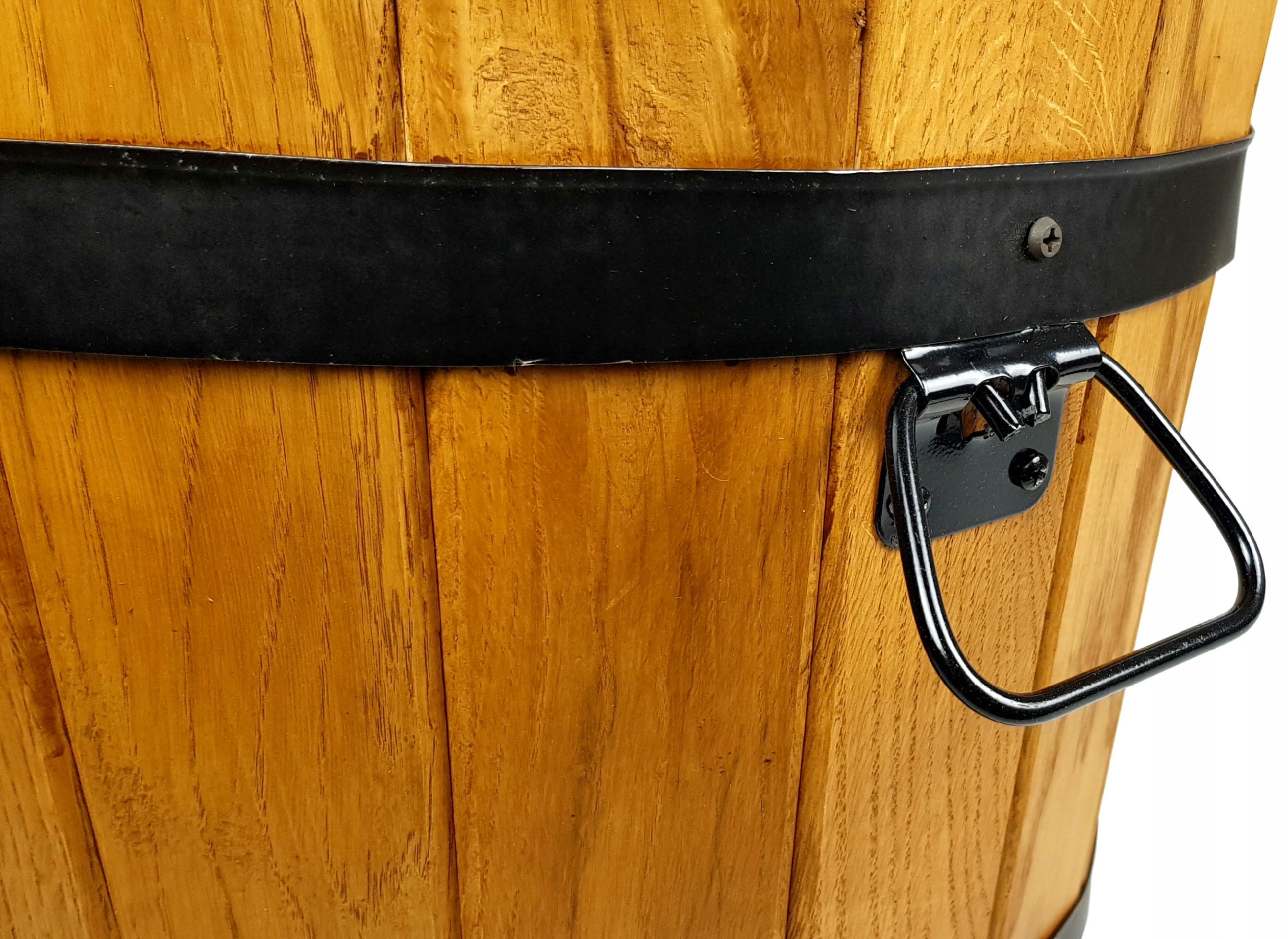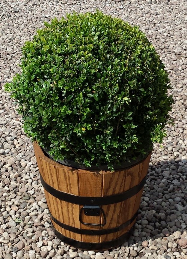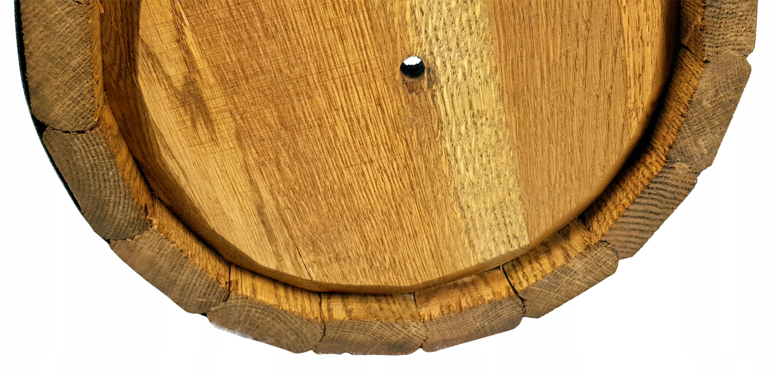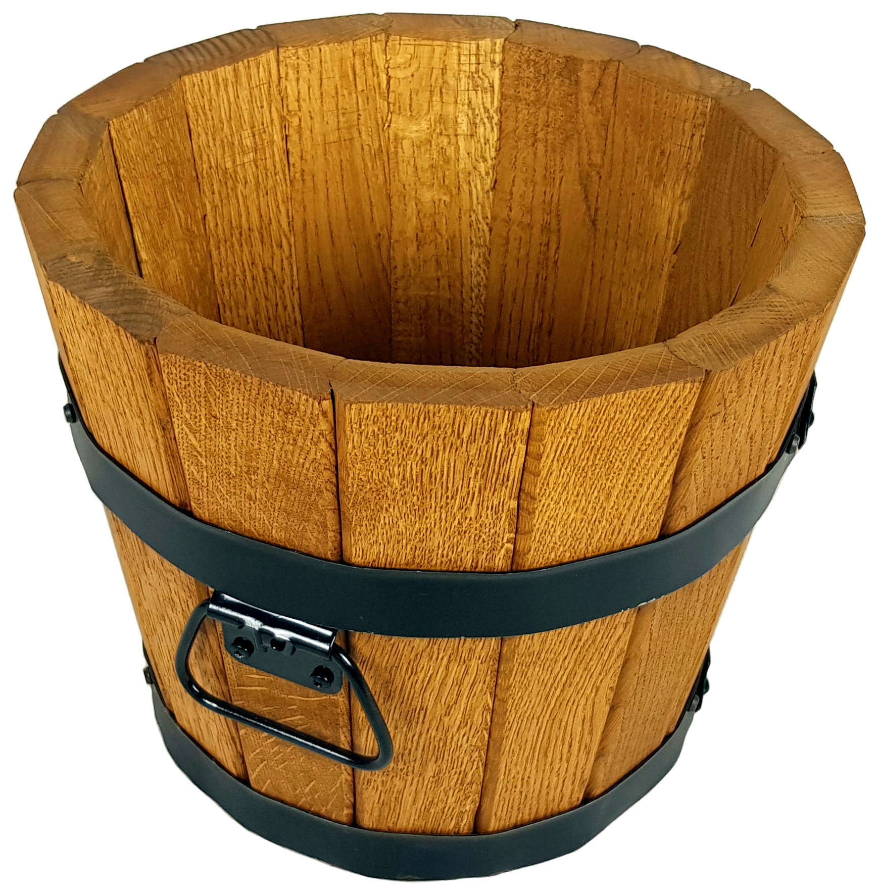 Donica posiada otwór drenażowy w grubym dnie z drewna dębowego.