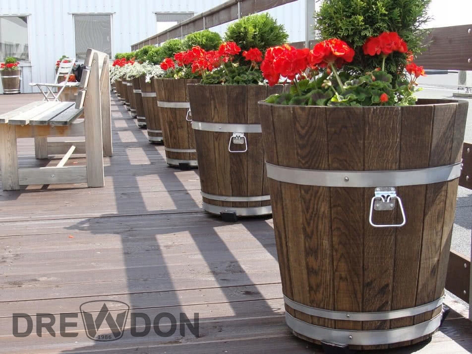 Prezentujemy ręcznie wykonane, tradycyjną metodą bednarską z wyselekcjonowanego drewna i nierdzewnej stali donice drewniane producenta DREWDON.