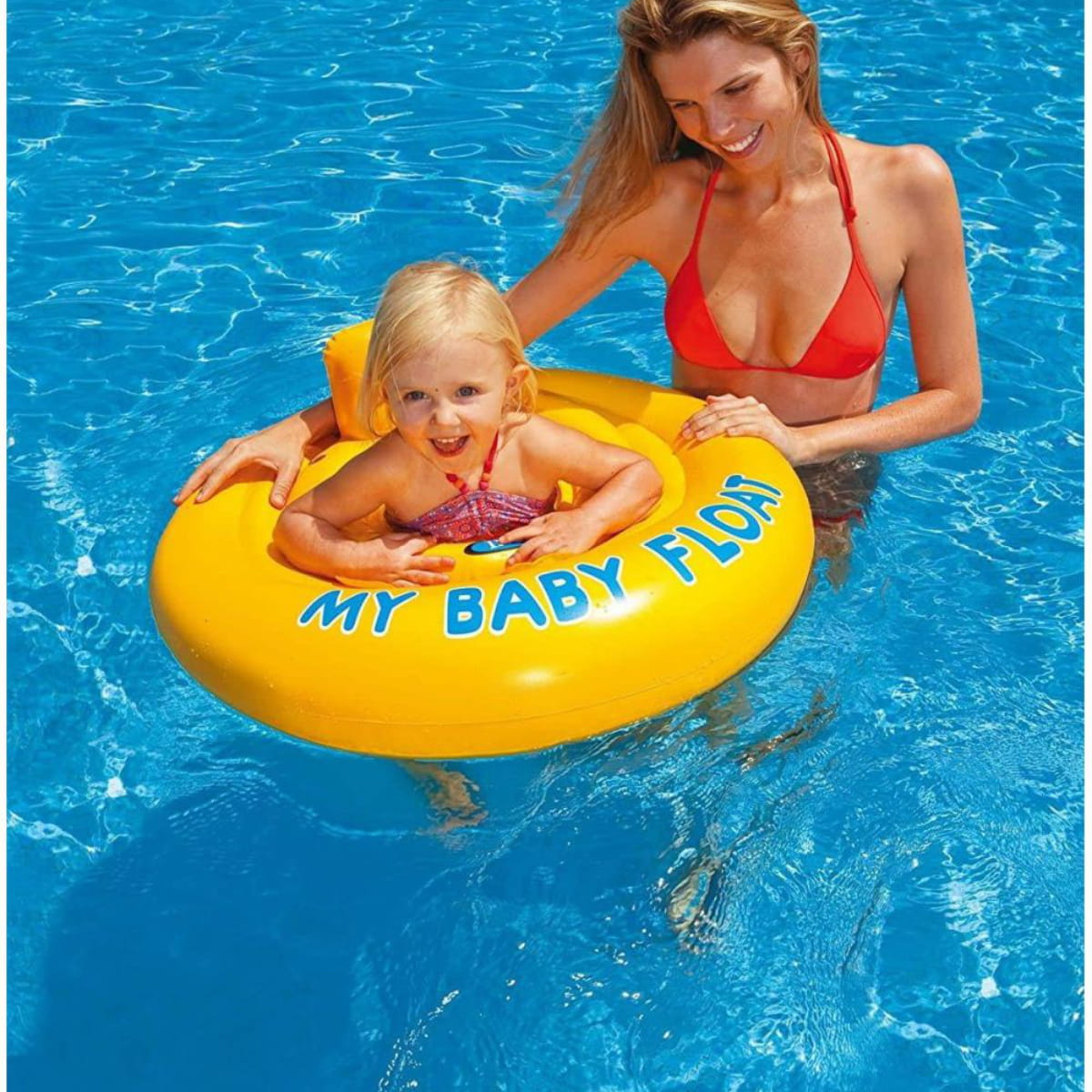 INTEX 56585 Fotelik do nauki pływania 6-12mcy Fotelik do nauki pływania został wykonany z wysokiej jakości tworzywa PVC o grubości 0.30mm, przeznaczony dla dzieci od 6 do 12 miesięcy, posiada 4 komory powietrzne co zapewnia stabilność i utrzymanie się na wodzie. Wbudowane siedzisko oraz dmuchany zagłówek zapobiegną zbytniemu wychyleniu się dziecka. Dzięki jaskrawej kolorystyce łatwo je dostrzeżesz na wodzie. W zestawie znajduje się łatka samoprzylepna. Maksymalne obciążenie 11 kg. Waga 0,75kg.