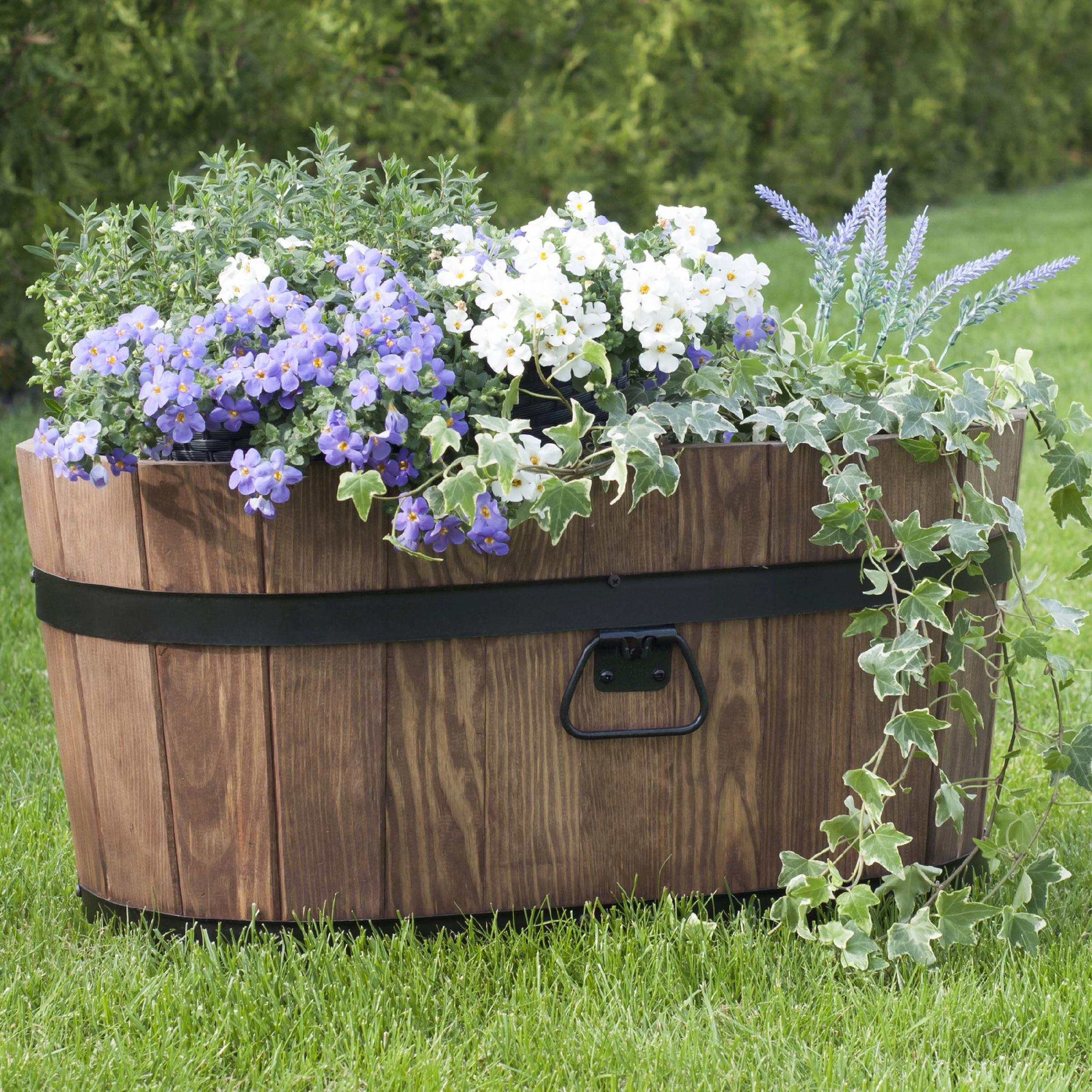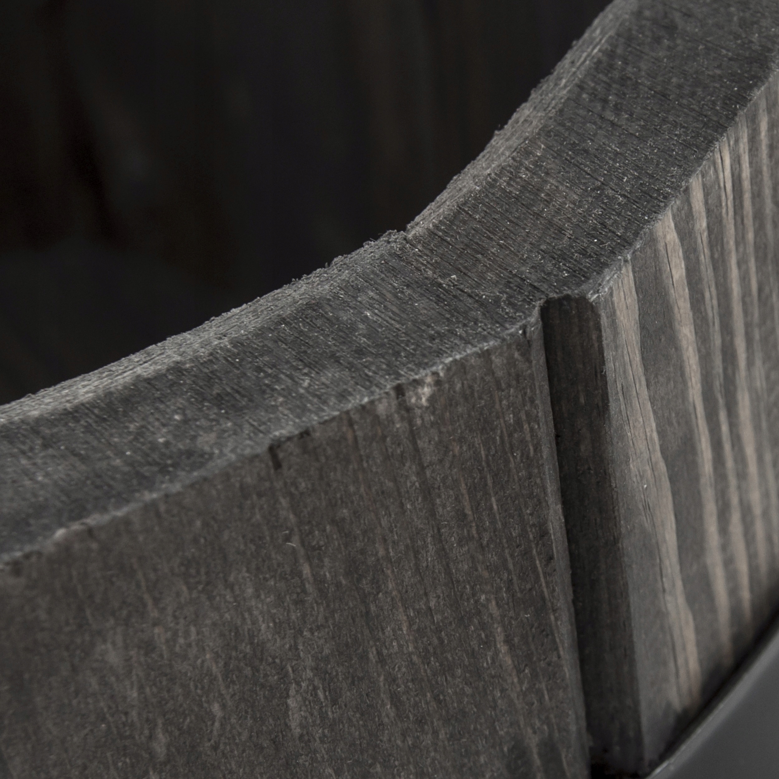 Doniczka posiada otwory drenażowe w grubym dnie z drewna sosnowego.