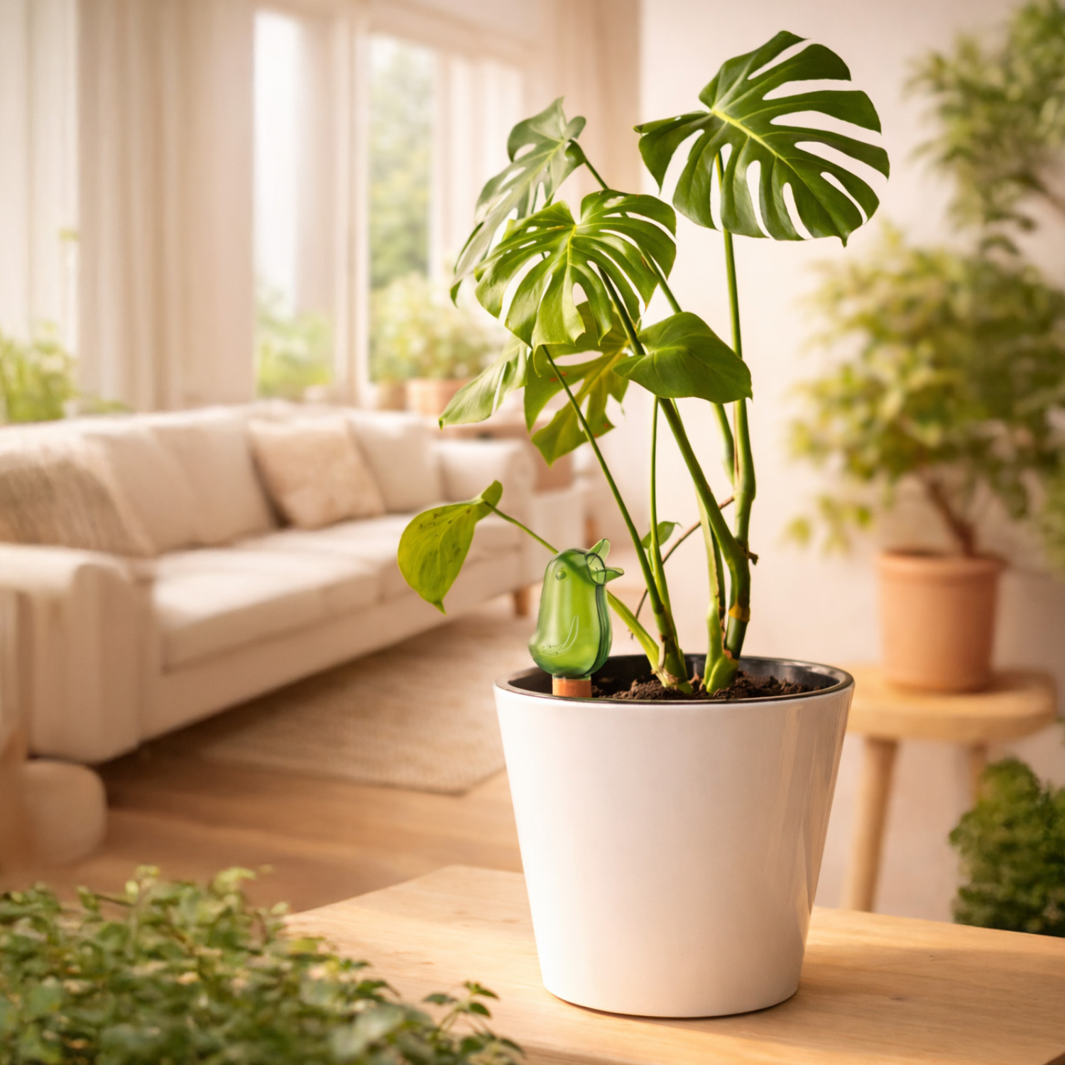 Uroczy i funkcjonalny zbiorniczek do nawadniania roślin w kształcie ptaszka to praktyczne rozwiązanie dla wszystkich miłośników roślin – zarówno w domu, jak i na balkonie, tarasie czy w ogrodzie. Dzięki niemu rośliny mogą być regularnie nawadniane nawet wtedy, gdy nie ma możliwości codziennej pielęgnacji.