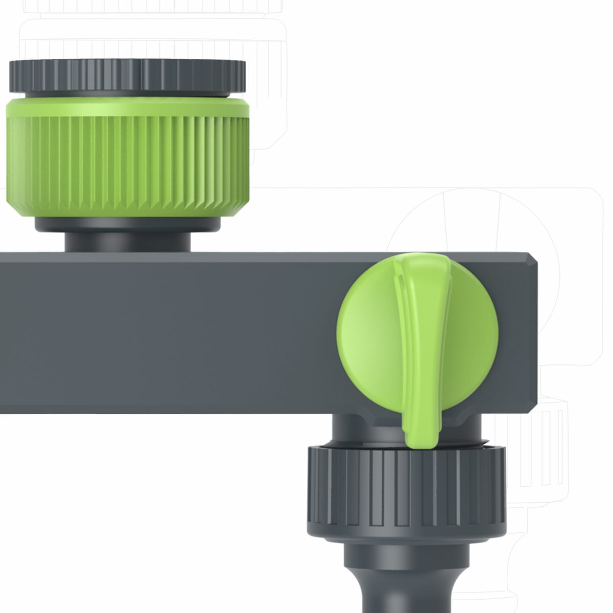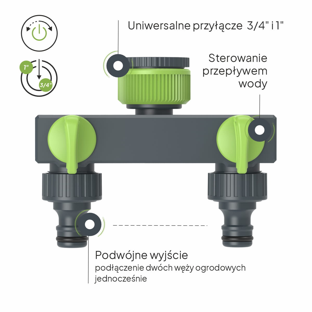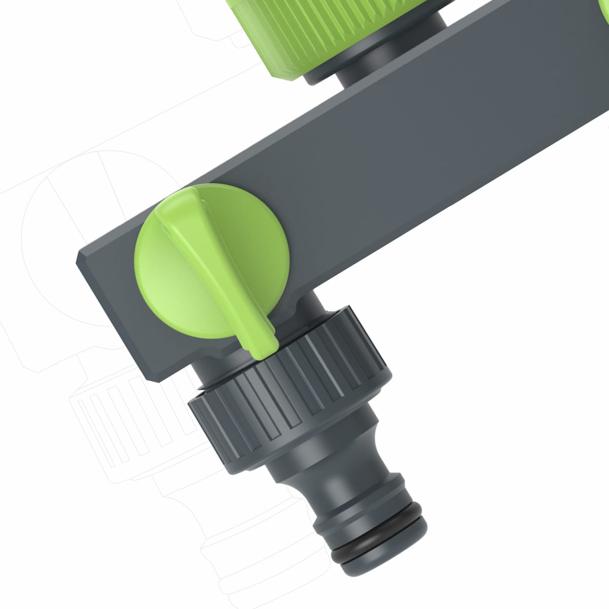 Umożliwia podłączenie dwóch węży ogrodowych jednocześnie – idealne do jednoczesnego podlewania i innych prac ogrodowych. - Indywidualna regulacja przepływu