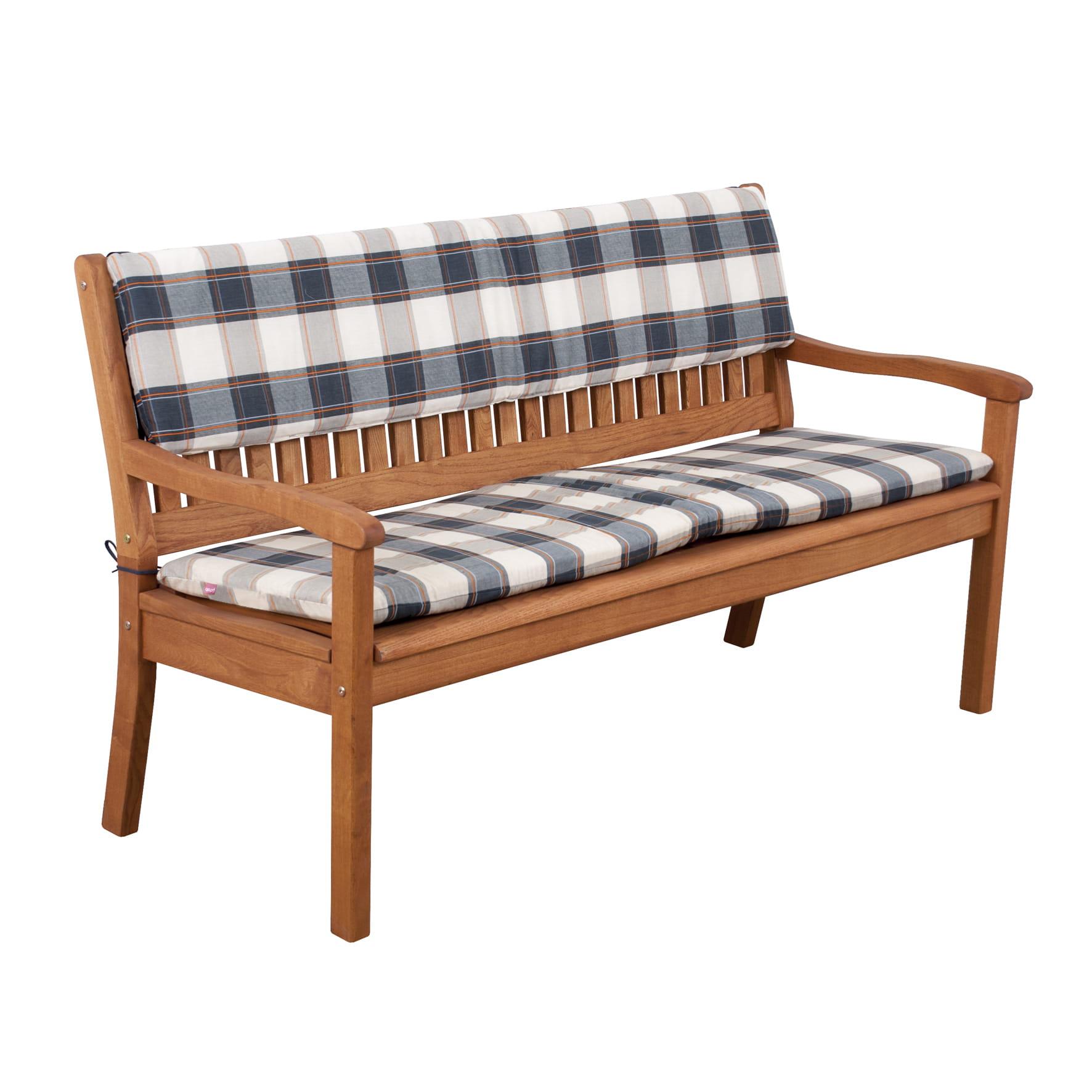 Poduszka na siedzisko do ławki 3-osobowej do mebli ogrodowych. Poduszka siedziska jest mocowana za pomocą dwóch sznurowadeł. Pokrowca nie można zdjąć. Wyprodukowano w Czechach.