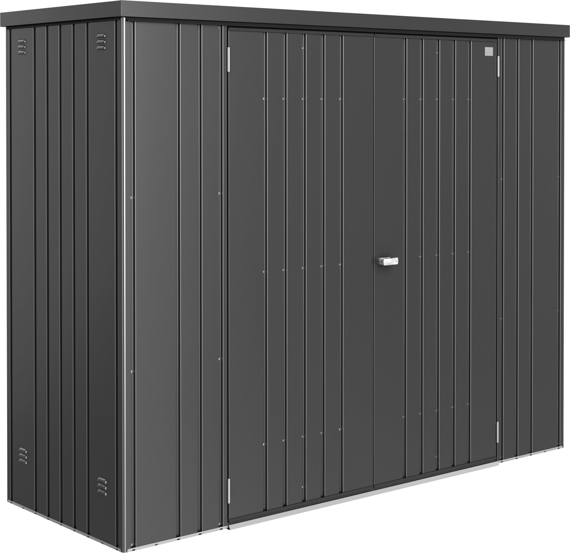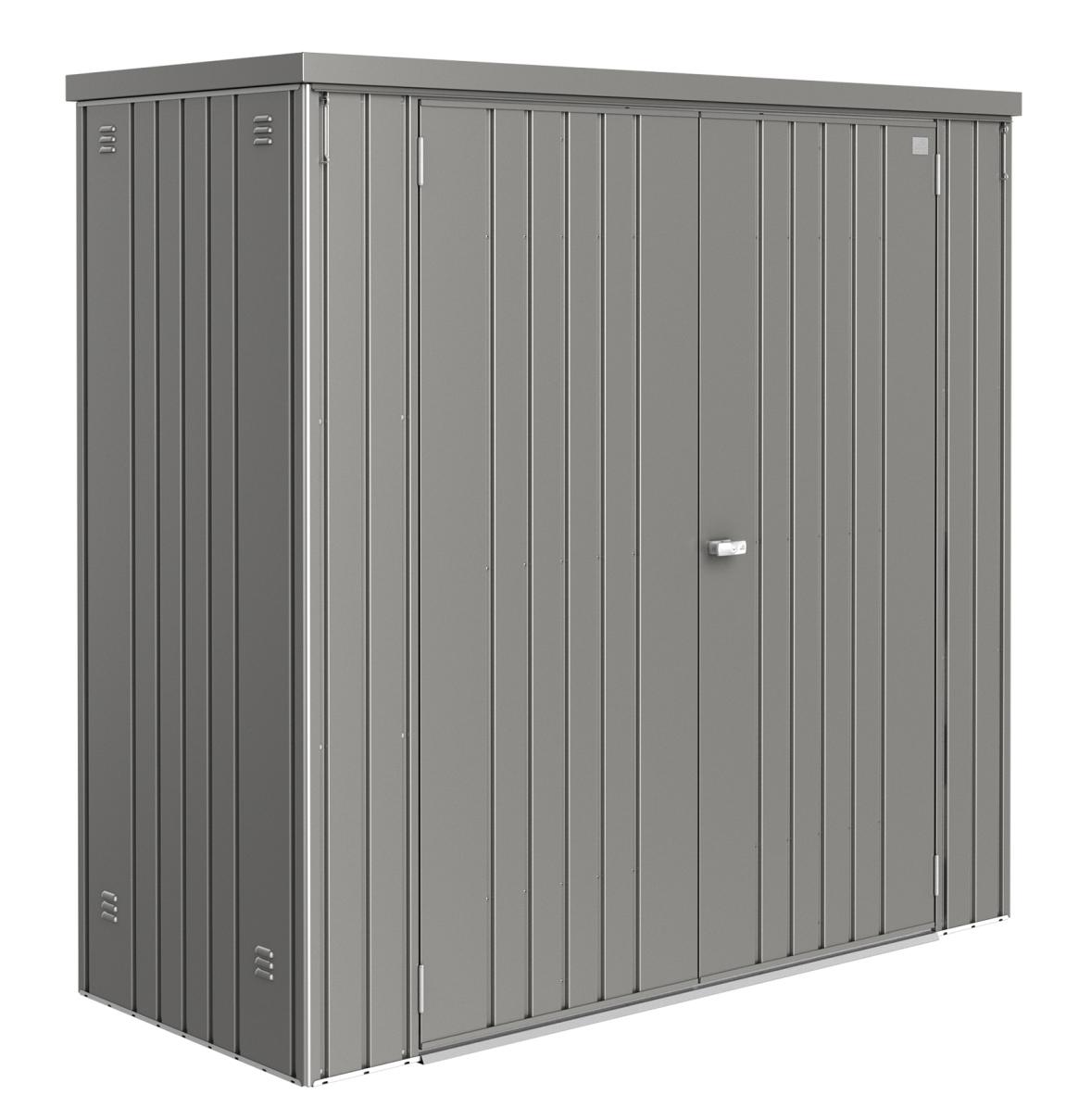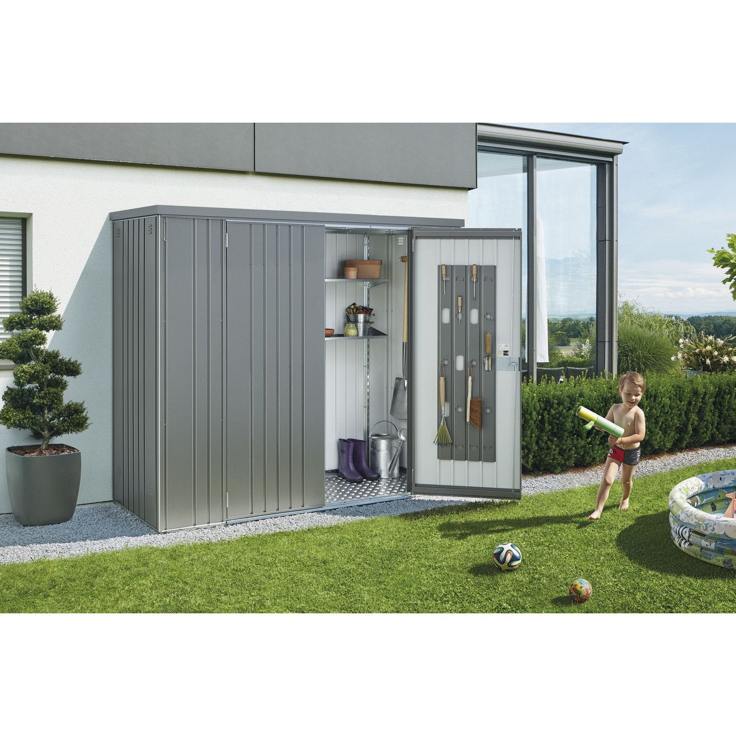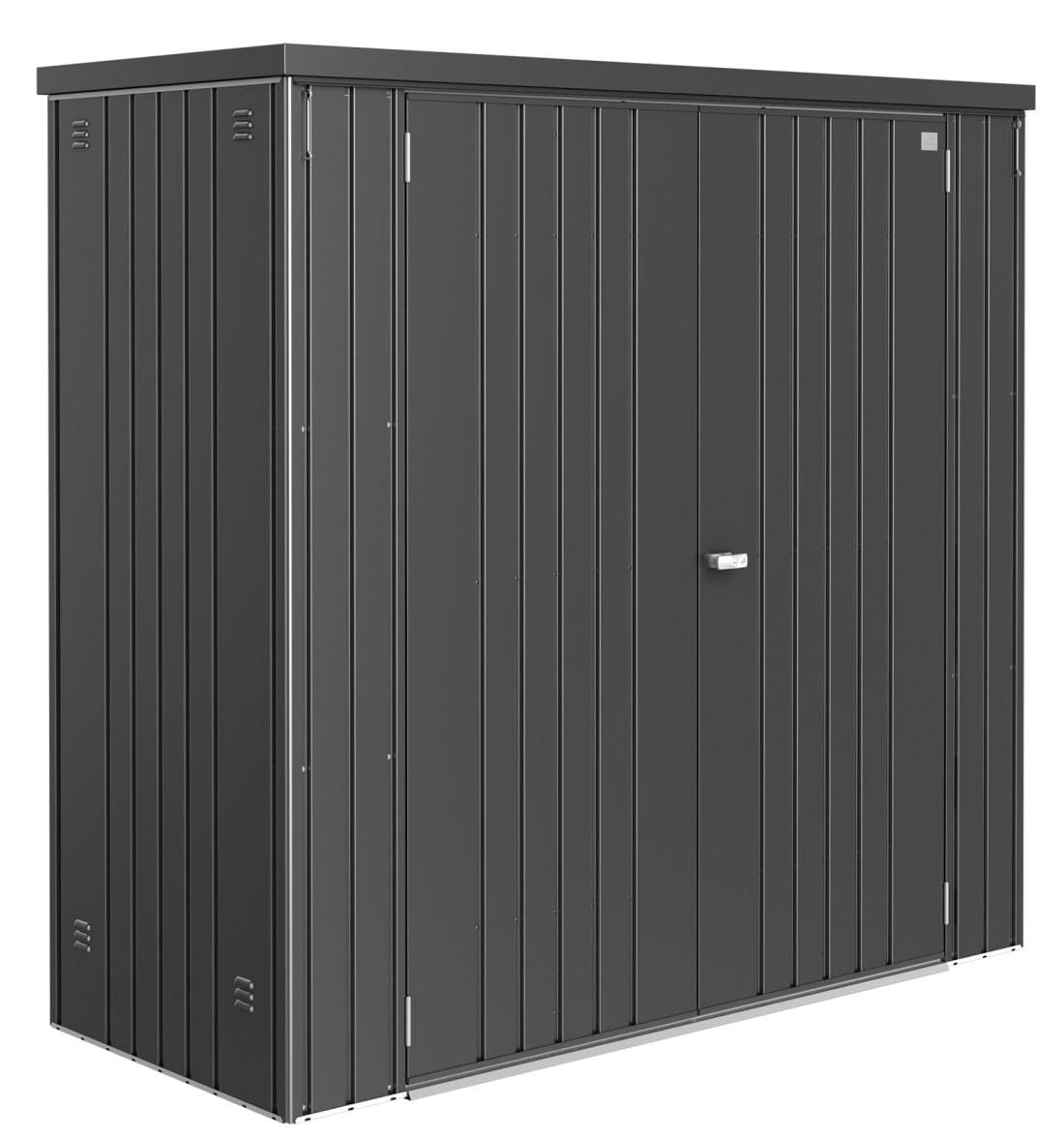 Ta kompaktowa szopa narzędziowa jest idealna do uporządkowania tarasu lub ogrodu, zapewniając bezpieczne miejsce na wszystko – od grilli po narzędzia ogrodowe i zabawki. Jej ponadczasowy, nowoczesny design stanowi stylowe uzupełnienie każdej przestrzeni zewnętrznej.