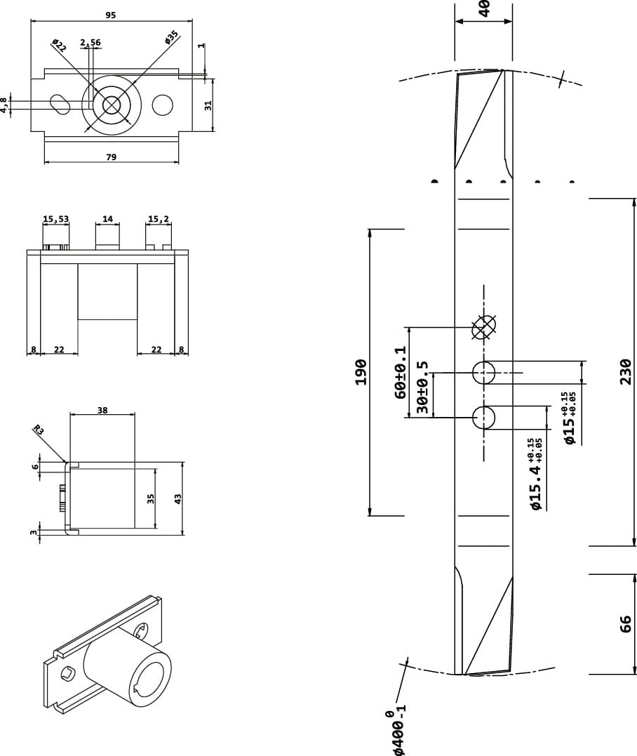Uniwersalny nóż i piasta do kosiarek spalinowych 40 cm
